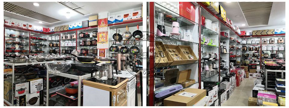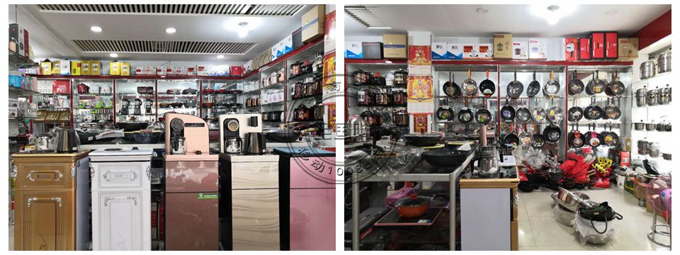 各种规格炒锅、礼品套锅 小鸭牌电压力锅、三角/新飞电饭锅、高中低档快速壶、电热锅、果汁机、韩式方锅、电饼铛、上水壶等小家电系列鑫亿牌、乐钞厨、真不粘、摔不烂等炒锅系列。